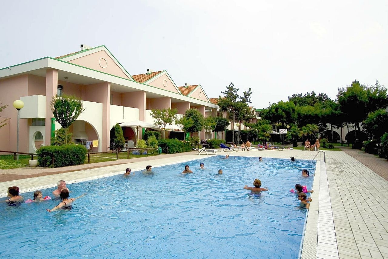 Újjabb építésű ház, 500 m-re a tengertől, a Piazza Fontana közelében BIBIONE SPIAGGIA részén, 50 sorvillából áll, saját kerttel rendelkezik. Minden apartmanhoz autóhely/garázs tartozik és légkondicionálóval felszereltek. Teljesen körülzárt, 2 bejárattal, emellett egy nagy medencéje van gyermekeknek és felnőtteknek egyaránt. A kertben napozóterasz is található.