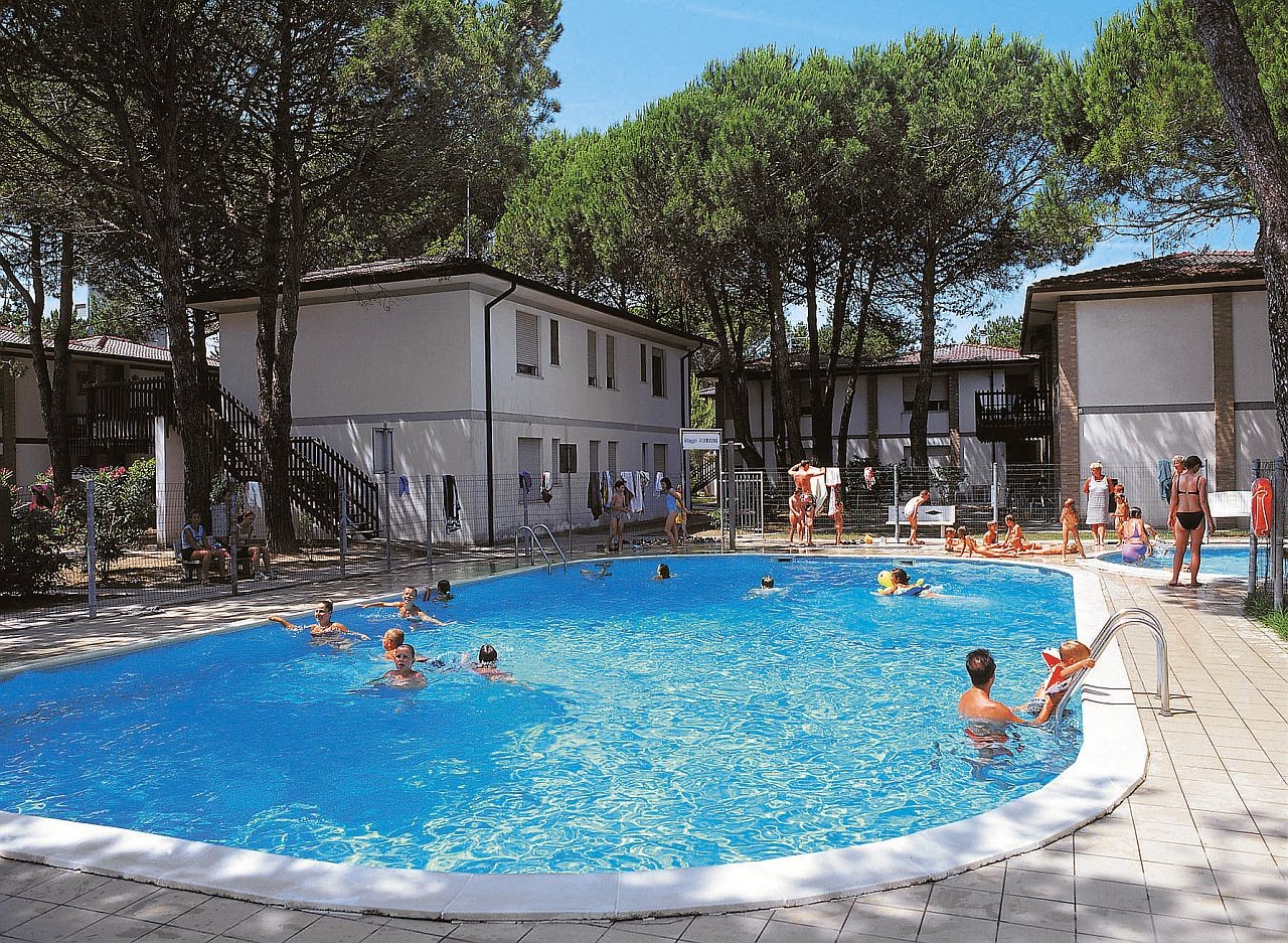 Sorvillák medencével, parkolóval, közös kerttel, 400 m-re a tengertől BIBIONE LIDO DEL SOLE részén.