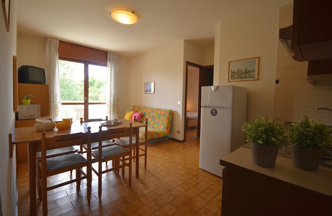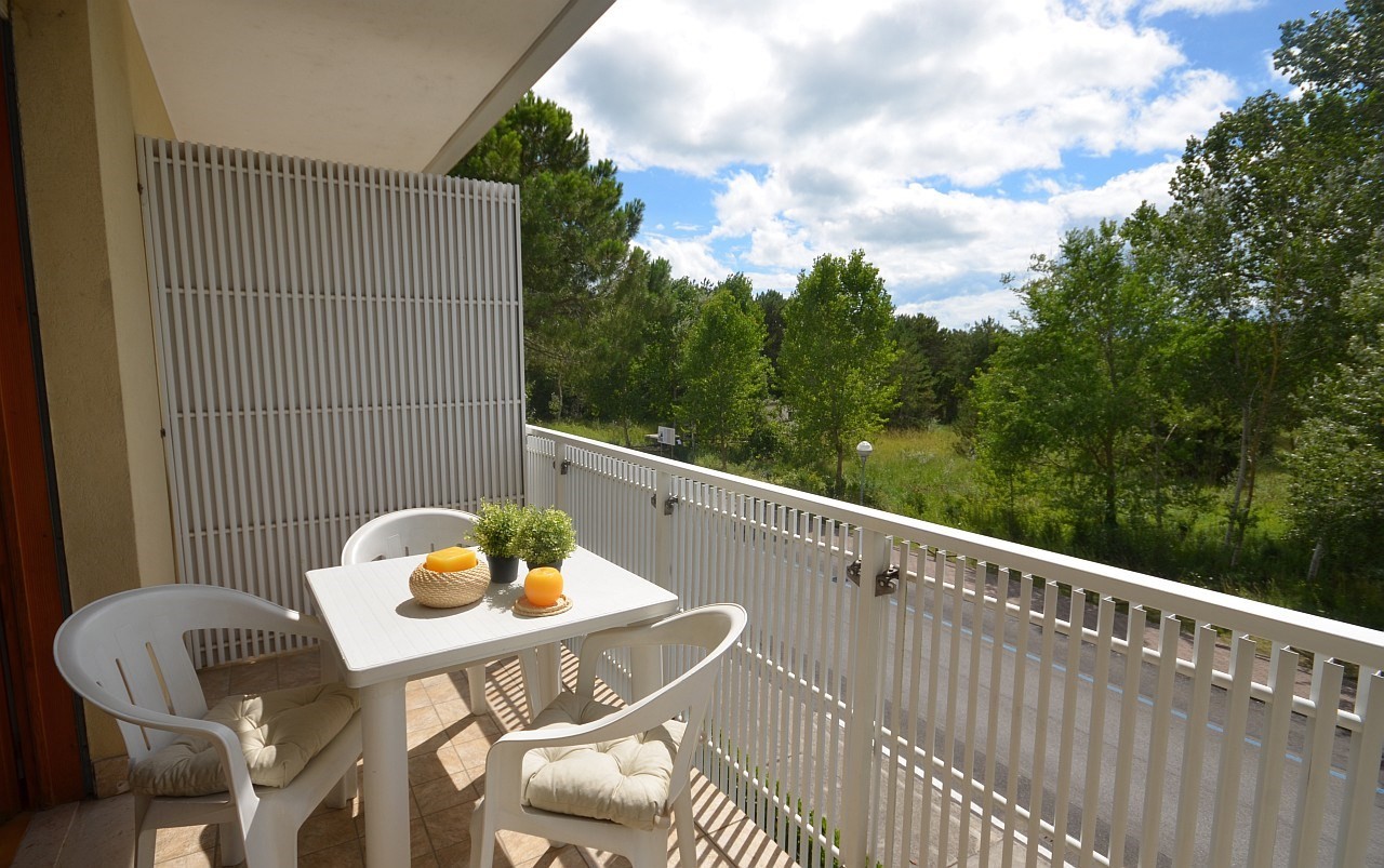 Apartmanház 500 m-re a tengertől BIBIONE SPIAGGIA részén. Mindegyik terasszal, fedett parkolóval.