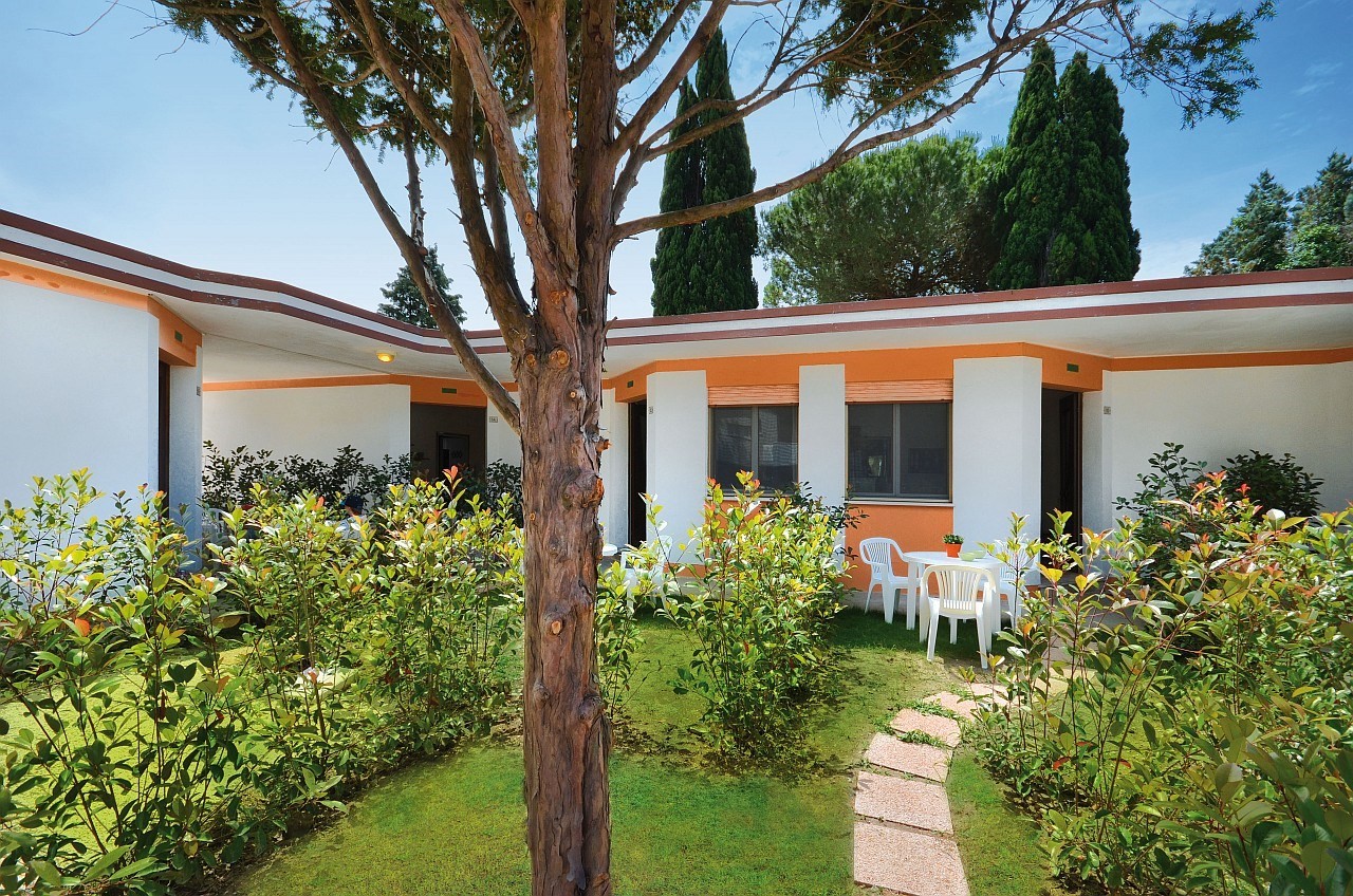 6 villából álló üdülőfalu, nyugodt részén Bibionénak , 700 m-re a tengertől. Közös kert, autóhelyek.