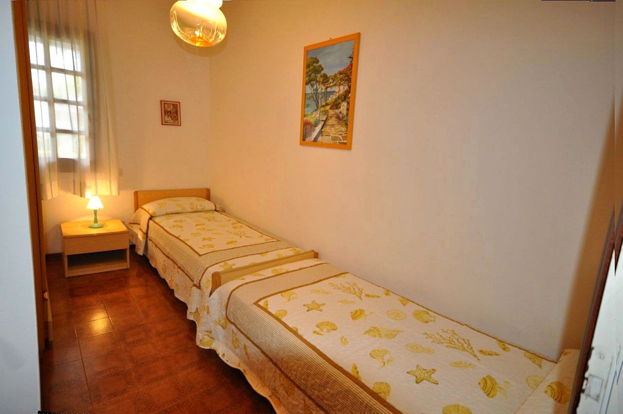 4 különálló apartmanból áll, 2 szinten, nagy saját kerttel, parkolóhelyekkel, 1250 m-re a tengertől BIBIONE SPIAGGIA részén.