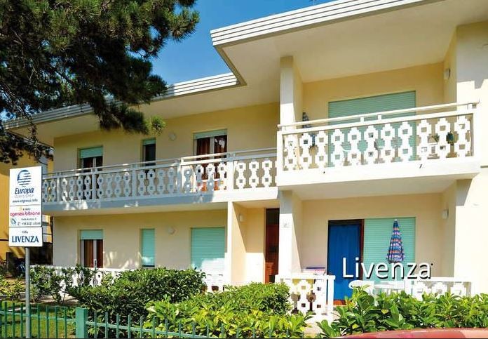 Két szintes épület, 250-450 m-re a tengertől, jól felszerelt apartmanok, zárt kerttel, foglalt fedett parkolóhelyekkel BIBIONE SPIAGGIA részén.