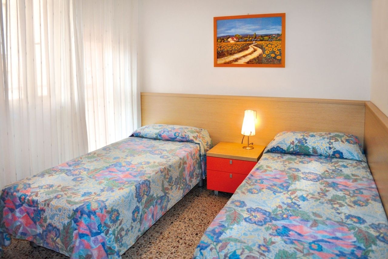 2 szintes épület, zárt, közös kerttel, tágas apartmanokkal, 150 m-re a tengertől, lift nélkül BIBIONE SPIAGGIA részén, az apartmanok légkondicionáltak.