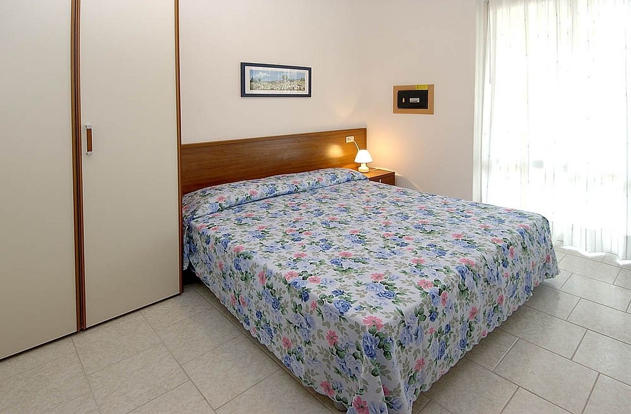 16 lakásból álló, két szintes apartmanház, 550 m-re a tengertől, központi részen BIBIONE SPIAGGIA részén. Kerttel és fedett parkolóhelyekkel, légkondicionálással.