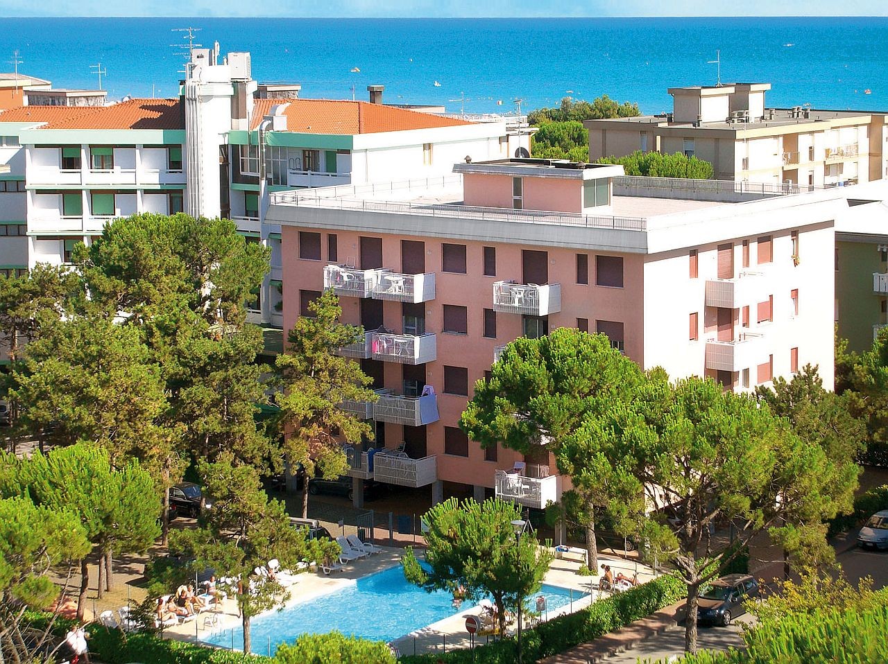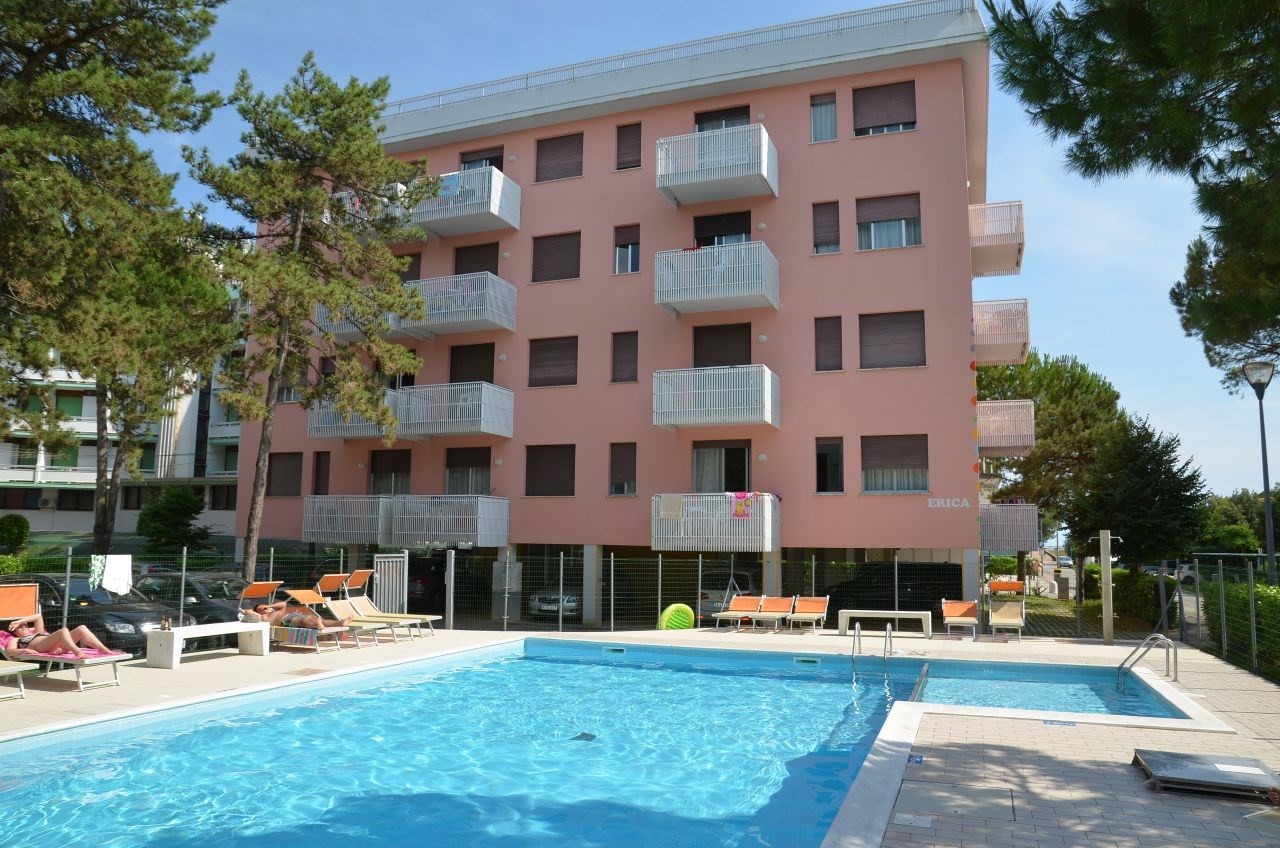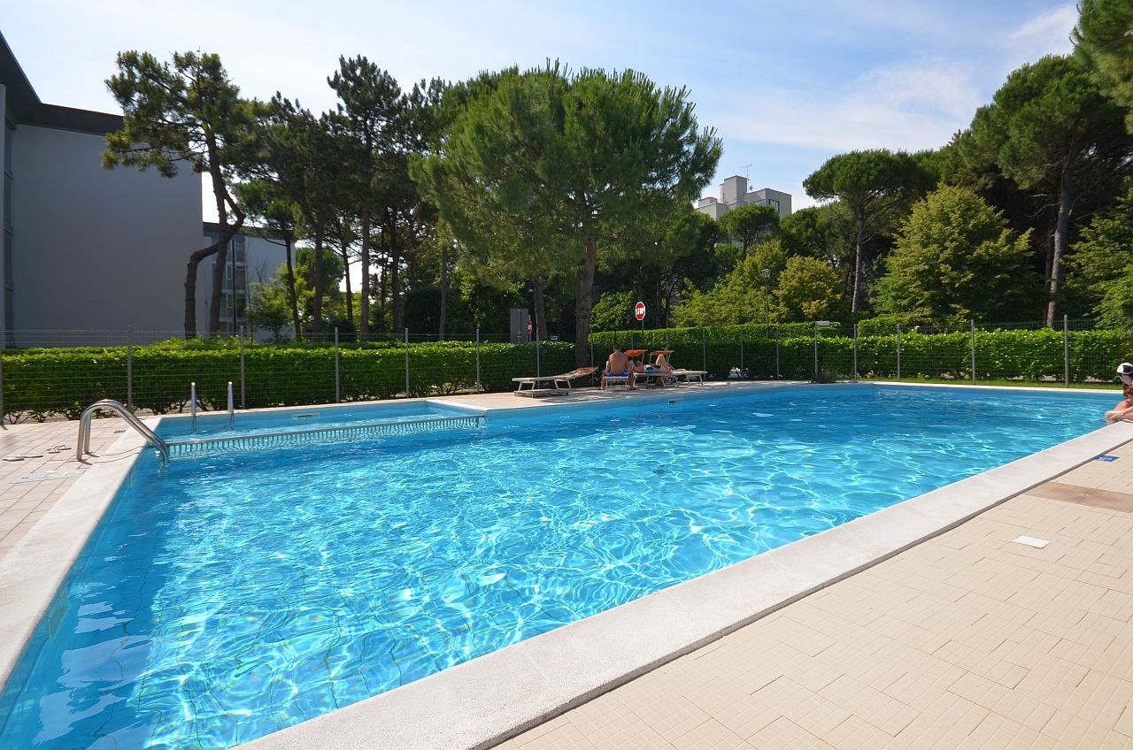 32 apartman 4 szinten, lifttel, parkolóval, 150 m-re a tengertől BIBIONE LIDO DEL SOLE részén. Felnőtt- és gyermekmedencével. Részlegesen felújított.