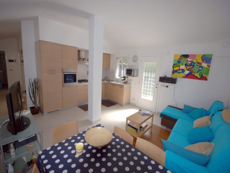 Teljesen felújított földszinti bungaló, Lignano Pineta zöld övezetében, 450 m-re a tengerparttól A ház modern bútorokkal lett berendezve. Légkondicionáló, mosogatógép, mosógép, kültéri kemence.