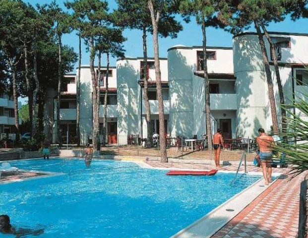 Az üdülőfalu Pineta és Sabbiadoro között található, 20 db, több szinten elhelyezett sorházból áll (belső csigalépcsővel), ideális családok számára. Felnőtt- és gyermekmedence, napozóágyakkal, május közepétől körülbelül szeptember közepéig tart nyitva. Az apartmanok egy nagy zöld, fákkal szegélyezett, csendes környéken helyezkednek el, egyenként 2 parkolóhellyel. A strand és Sabbiadoro központja kb. 1 km-re. Mosógép közös használatú és ingyenes a vendégeknek, "Wi-Fi" kapcsolat (nincs streaming, nincs letöltés) a kertben és a medence területén, az első ágynemű és törölköző az árban. Strandszolgáltatás, maximum 4 fő részére, mely a következőkből áll: 1 napernyő, 1 napozóágy és 1 nyugágy az árban. Minden apartman felszereltsége: széf, hűtőszekrény külön fagyasztóval, mikrohullámú sütő, kávéfőző, műholdas TV és légkondicionáló.