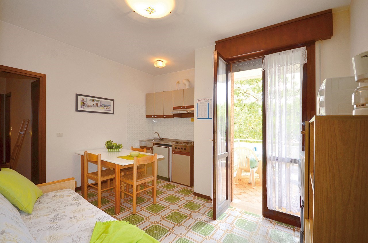 4 szintes apartmanházak, lifttel, 1100 m-re a tengertől BIBIONE SPIAGGIA részén. Medence gyermekmedencével és kert.Légkondicionálás csak a C1-5 típusú apartmanban elérhető.