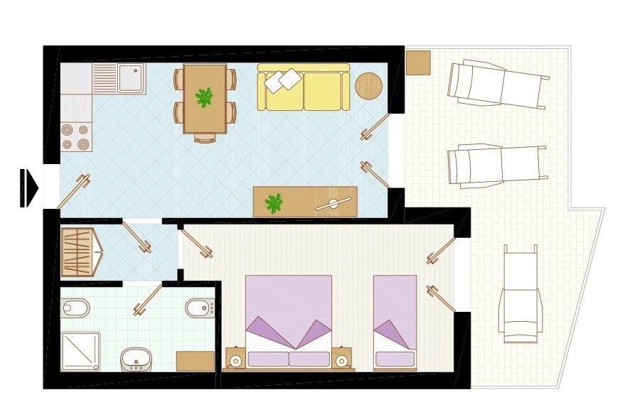 Az apartmanok díja tartalmazza a strandszervíz díját (1 napernyő, 1 nyugágy, 1 nyugszék).