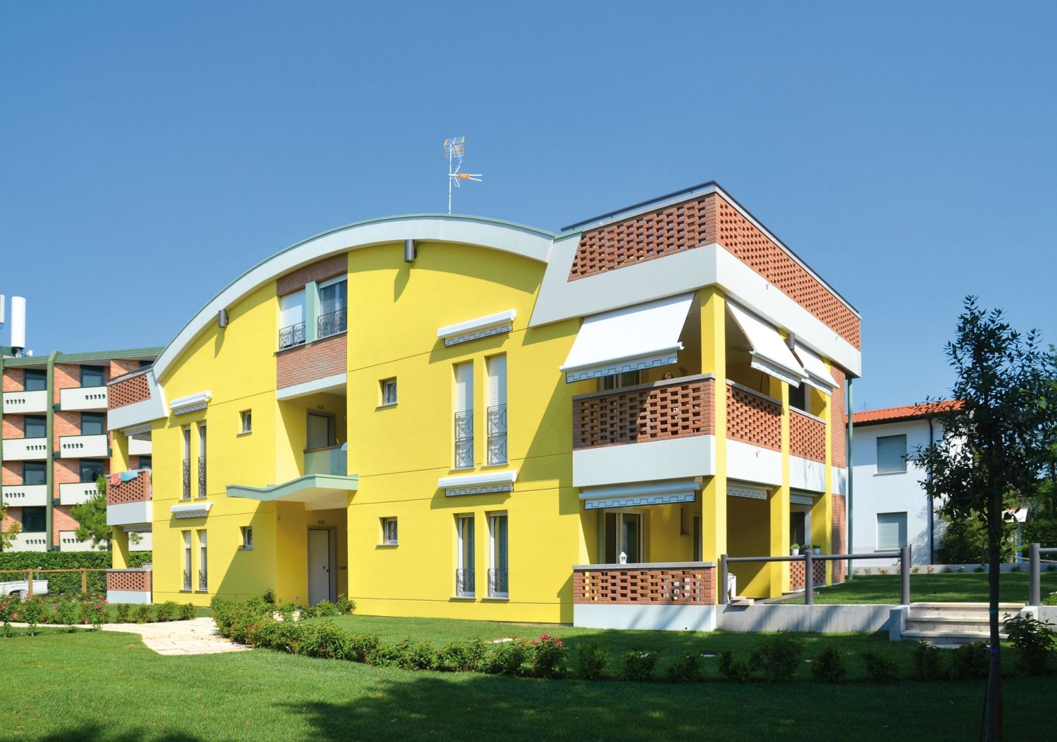 Új építésü, elegáns Residence kiemelt helyen, közvetlen tengerparti és mindössze 100m-re Bibione Pineda központjától. Mindössze 4 apartmanból áll, elegánsan berendezve és minden komforttal ellátva: blindált ajtó, SAT - TV, légkondicionálás / fütés, széf, mikrohullámú sütö, mosogatógép és mosógép, egyszeri ágynemű és törölköző szett az árban./