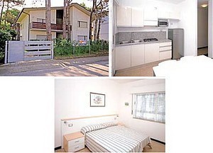 Ház 5 földszinti és elsö emeleti apartmannal, csendes, zöld környezetben elkerített kerttel és apartmanonként 1 parkolóhellyel. Pár lépésre LIGNANO PINETA központjától és kb. 400 méterre a tengerparttól található. Mindegyik apartman teljesen felújított SAT-TV-vel és légkondícionálással, széffel, mikrohullámú sütővel, földszinti apartmanok saját kerttel, az elsö emeleti apartmanok terasszal. Mosógép áll a vendégek rendelkezésére.