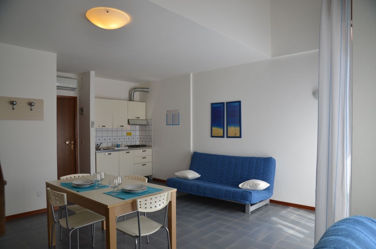 Tengerparti fekvésű, kívülről felújított, 3 szintes, terasszal, 2 lifttel, foglalt autóhelyekkel BIBIONE LIDO DEI PINI részén.
