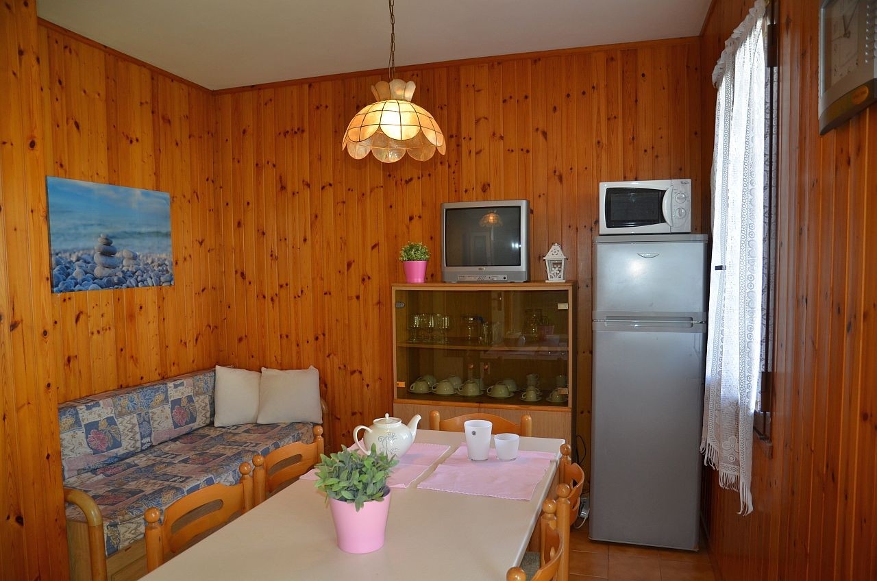 HÁROM LÉGTERŰ földszinten vagy első emeleten, 4-6 fő részére: nappali dupla dívánnyal, szoba két egyszemèlyes ággyal, szoba emeletes ággyal, főzőfülke, fürdőszoba, terasz vagy erkély.
