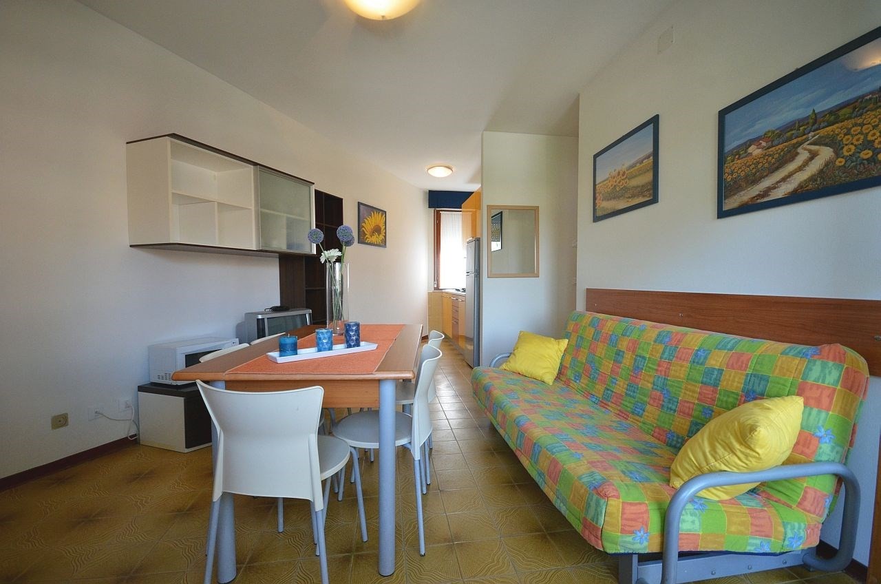 Épület nyugodt helyen, közös tágas kerttel, 300 m-re a tengertől BIBIONE PINEDA részén. Teljesen felújított apartmanok. Fedett és számozott parkolóhelyekkel.