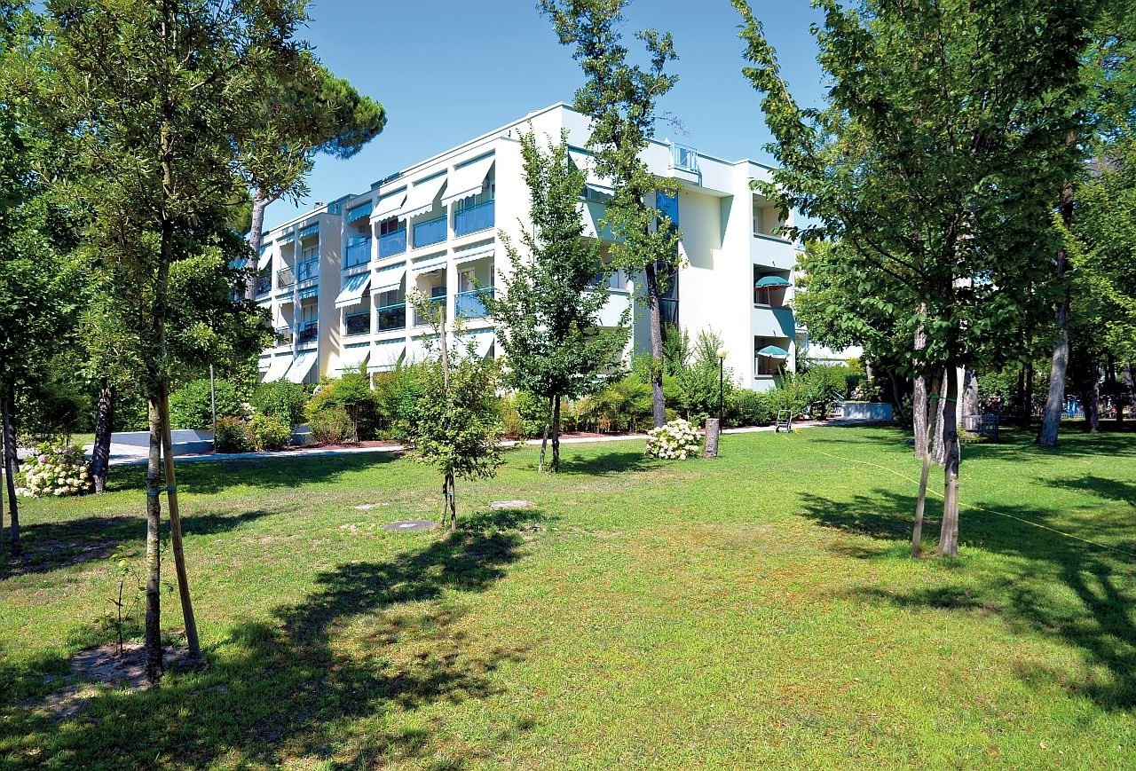 Apartmanház kb. 50 méterre a tengertől és 100 méterre Bibione Pineda központjától medencével, lifttel és parkolóhelyekkel.