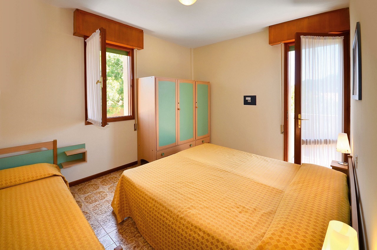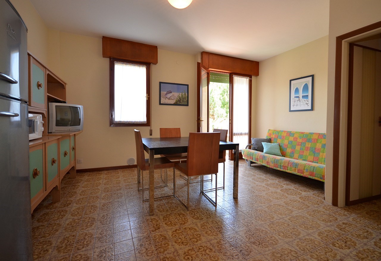 Üdülőegység, Bibione Pineda zöldövezeti részén, közel a centrumhoz, 200 m-re a tengertől. Minden apartmanhoz parkoló tartozik. Két lifttel felszerelt. Az épületben zsetonos mosoda áll a vendégek rendelkezésére. Légkondicionált apartmanok.