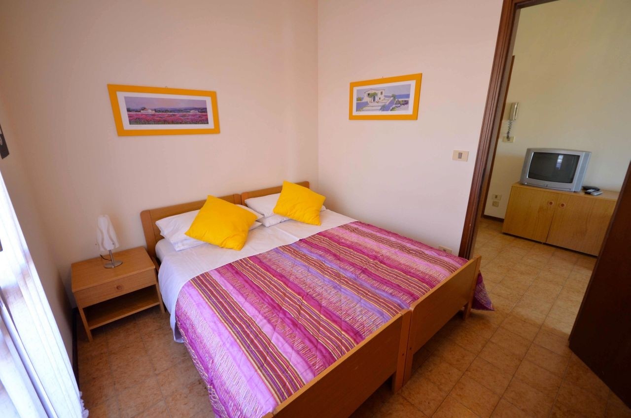 HÁROM LÉGTERŰ 4-6 fő részére: nappali dupla dívánnyal, szoba franciaággyal, szoba 2 egyszemélyes ággyal vagy emeletes ággyal, főzősarok, fürdőszoba, erkély. Légkondicionálás.