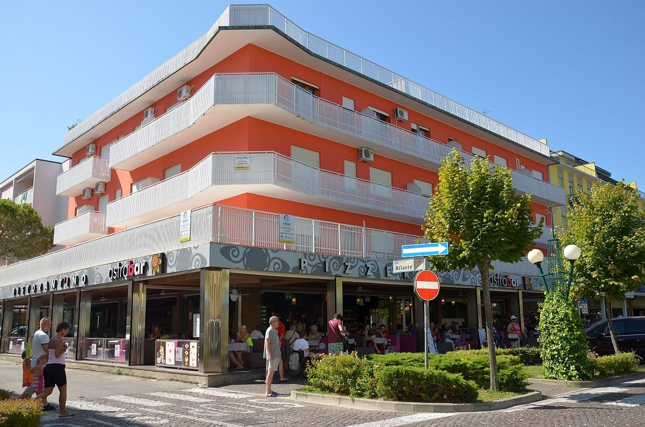 Központi fekvésű, 4 szintes apartmanházak, lifttel, parkolóval, 150 méterre a tengertől BIBIONE SPIAGGIA részén. WIFI elérés külön térítés ellenében.
