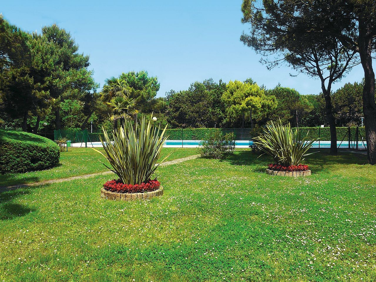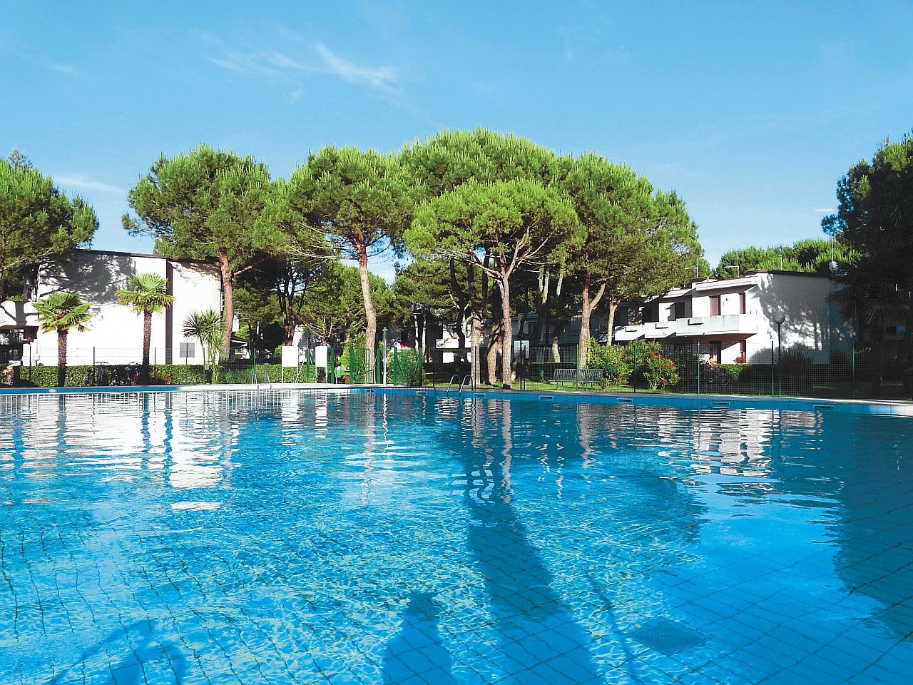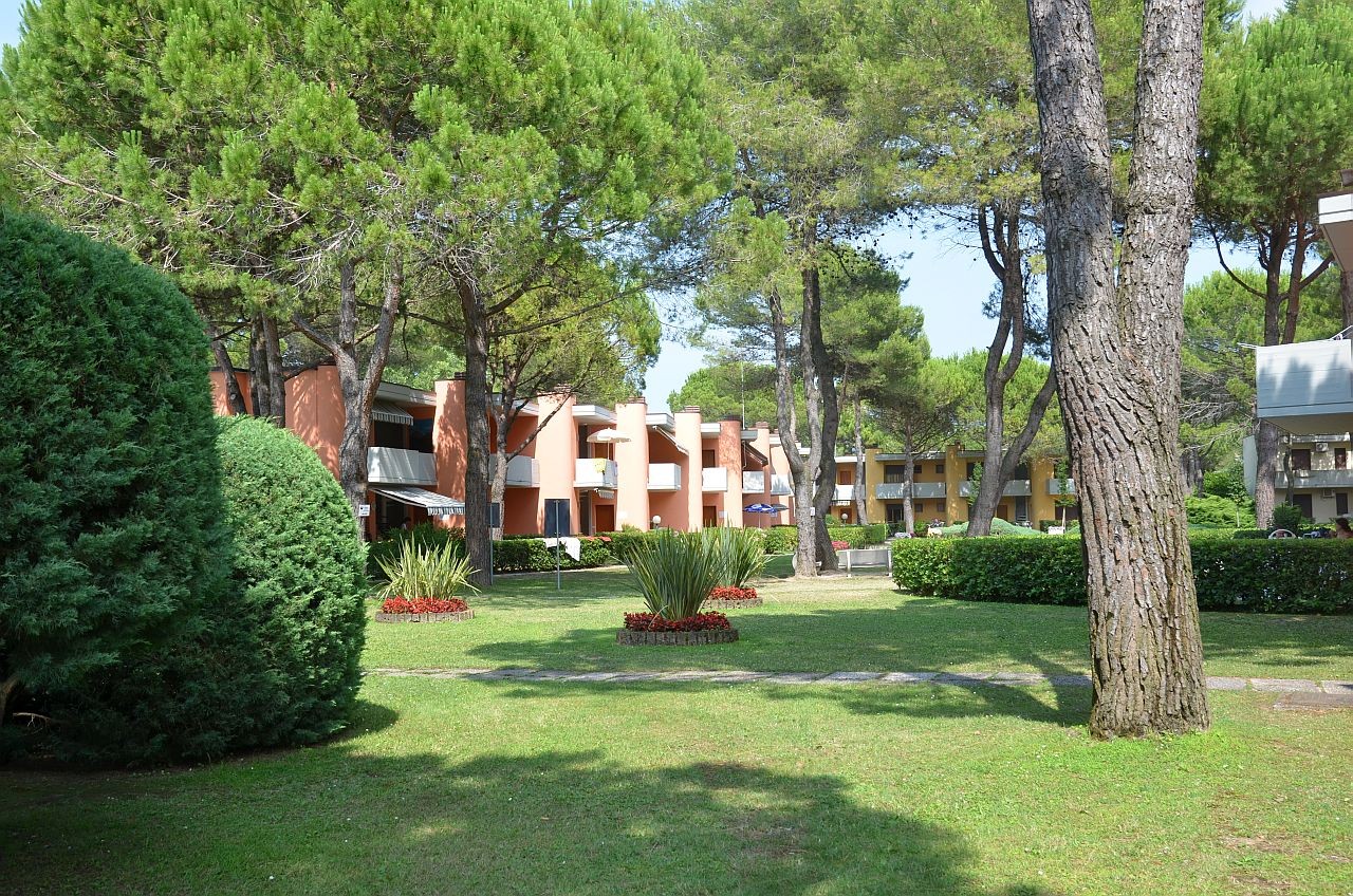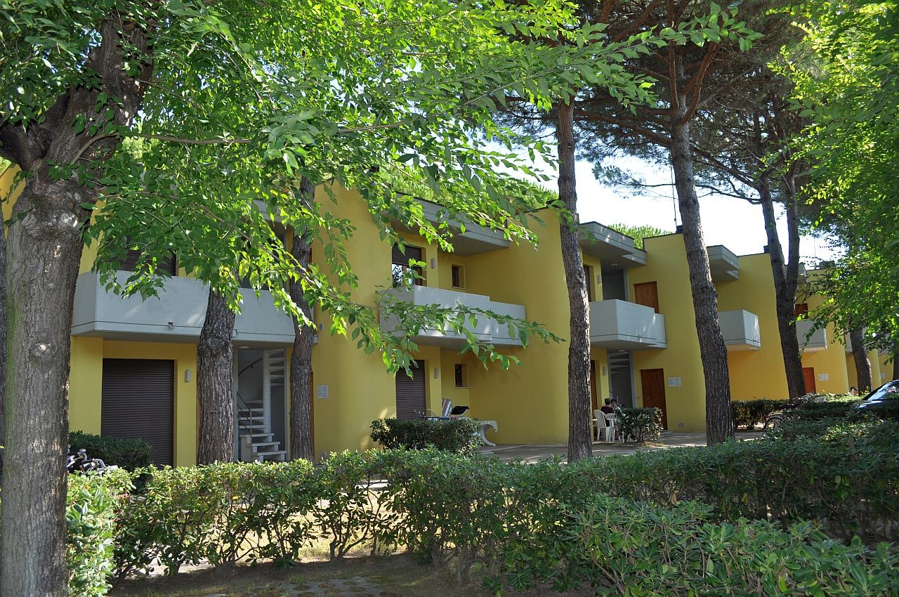 Sorházakból álló üdülők, nyugodt, zöld környezetben BIBIONE SPIAGGIA részén, 1100 m-re a tengertől, terasszal. Foglalt parkolóhelyek, felnőtt- és gyermekmedence.