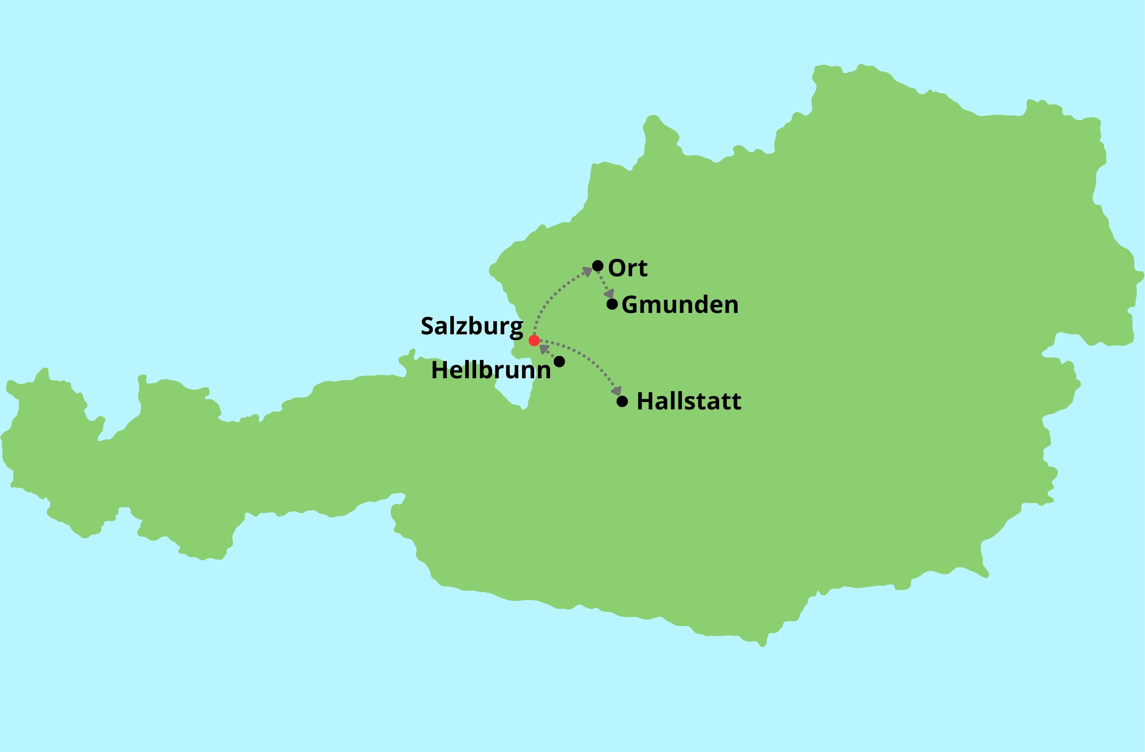 A második napon Ausztria egyik legismertebb és legfotózottabb városába indulunk: a mesebeli Hallstattba. A festői tóparton fekvő település az UNESCO világörökség része – és nem véletlenül! Egy kellemes séta keretében megnézzük a legfőbb látnivalókat: Marktplatz, Szentháromság-oszlop, Mária Mennybemenetele templom, Csontház. A Salzkammerguti-tóvidék festői tájain keresztül indulunk haza. Ellátogatunk Ort romantikus vízi kastélyába, mely a térség legkedveltebb fotótémája. Ezután rövid séta a Traunsee partján fekvő festői Gmunden városában. Hazaérkezés az esti órákban.