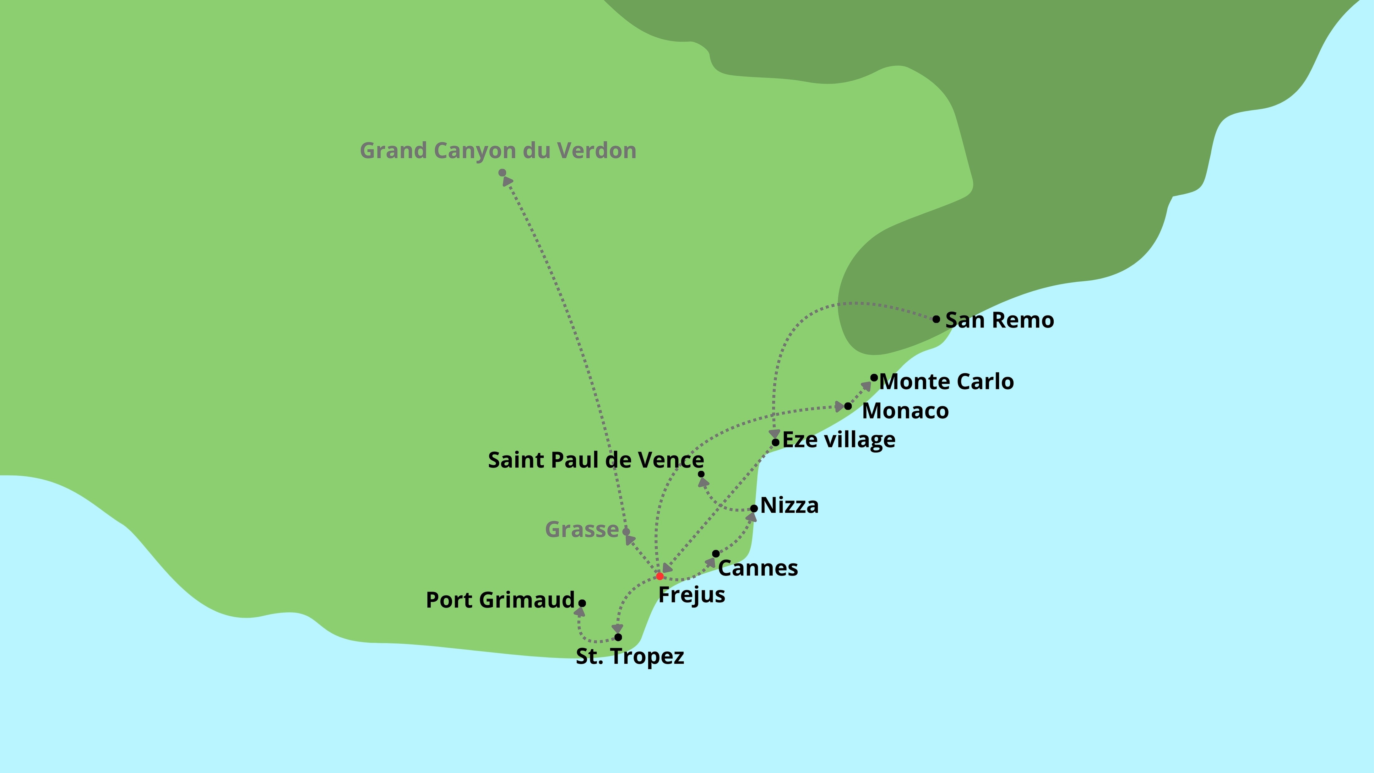 Reggeli után tovább utazunk, késő délelőtt látogatás San Remo városába. A „virágváros”-nak nevezett egykori halászfalu ma elegáns üdülőhely. Pálmafákkal szegélyezett festői kikötője, kis óvárosa (La Pigna) a szűk sikátoraival, apró tereivel, a világhíres kaszinója, mely egy építészeti remekmű kellemes sétát ígér. Megtekintjük Alfred Nobel házát is, ahol élete utolsó éveit töltötte. Késő délután a tenger feletti sziklákra kapaszkodó romantikus Eze Village falucskában. Este szállások elfoglalása Frejus környékén.