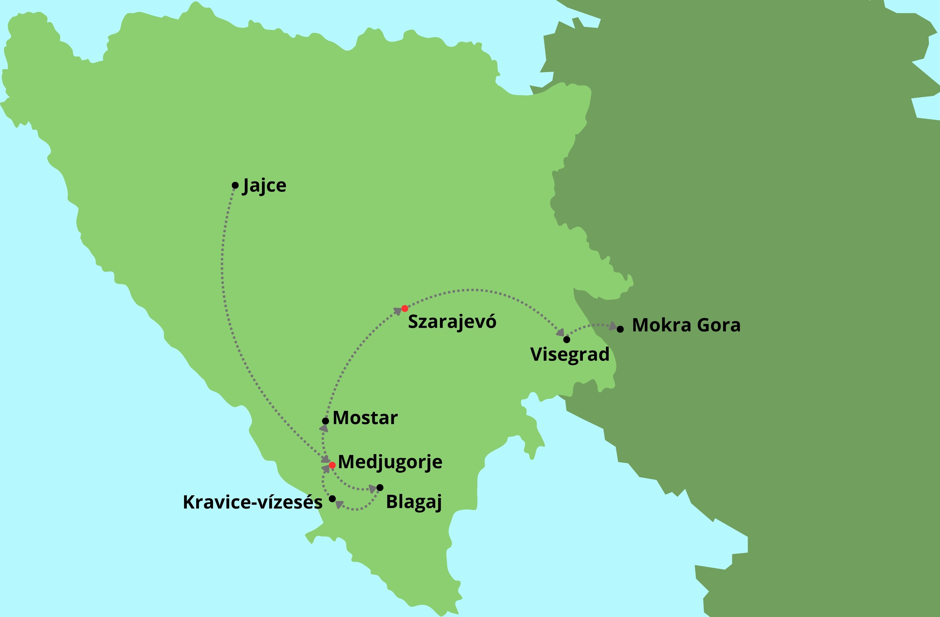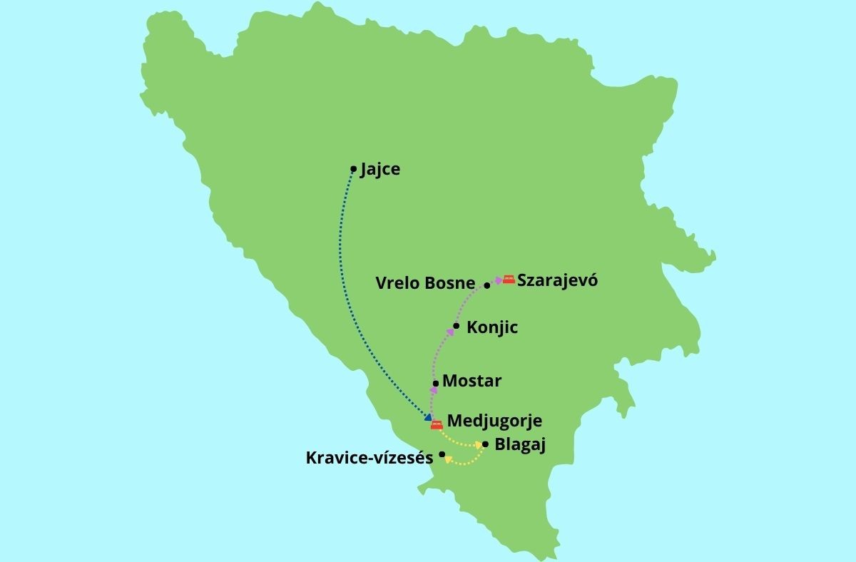 Jajce-Mostar-Blagaj derviskolostor-Szarajevo-Kravice vízesés-Konjic