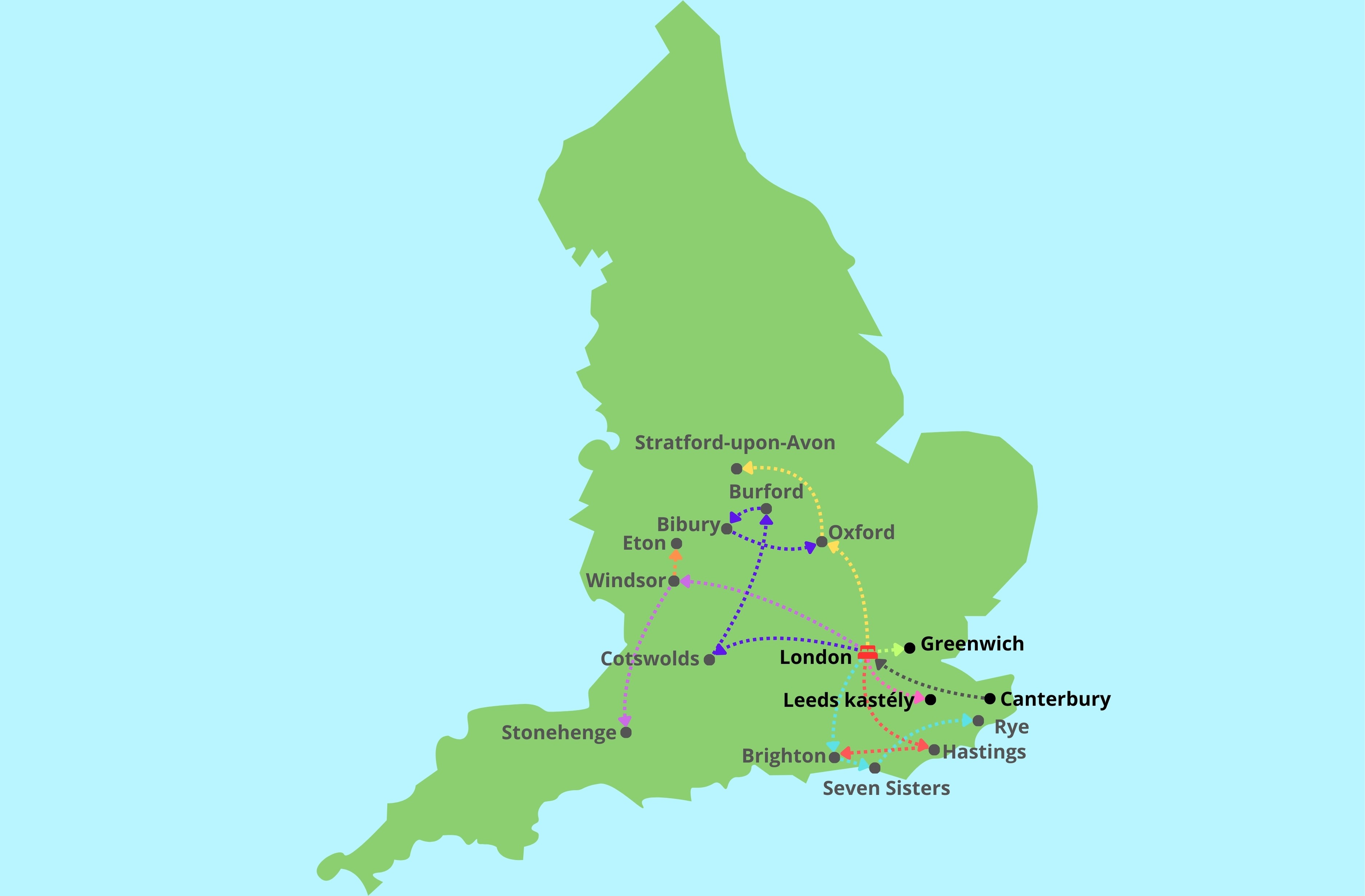 Reggel továbbutazás Calais felé. Kora délután átkelés a La Manche csatornán, majd látogatás Anglia egyik legszebb kisvárosába, Canterbury-be, ahol a katedrálisés a hangulatos utcák mesélnek a történelemről! Este szállások elfoglalása Londonban.